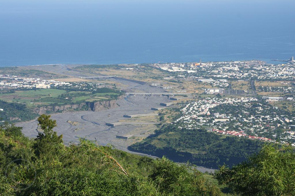 La Rivière des Galets et, à gauche, la communes de Saint-Paul, à droite celles du Port et de la Possession