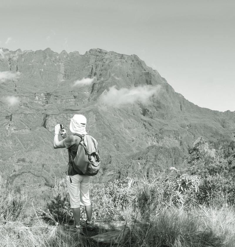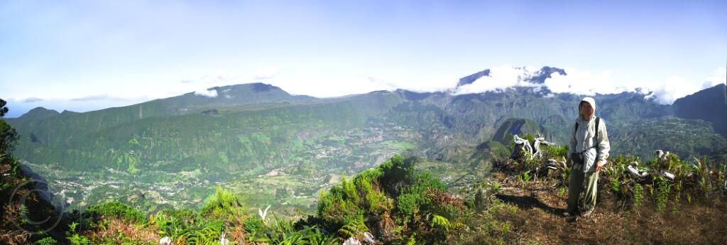 Sur le sentier de la Roche Ecrite, des vues en direction de l'Est et, du sommet, vue panoramique sur les cirques de Mafate et de Salazie et, sur la zone environnante